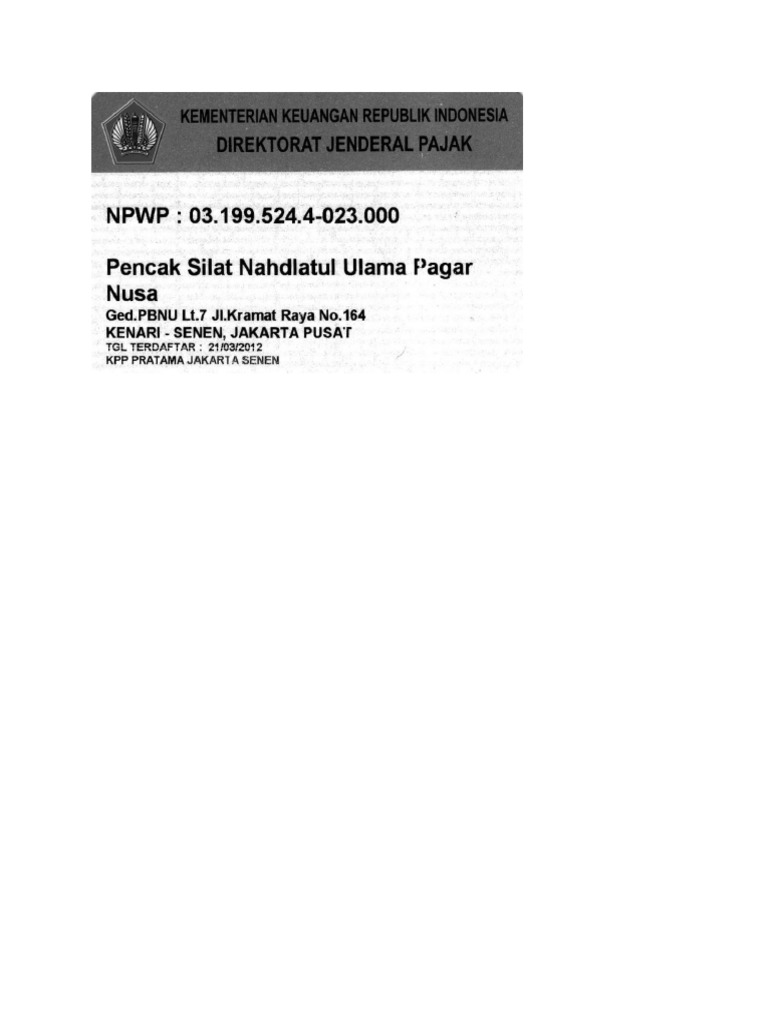 Nomor pokok wajib pajak (npwp) adalah nomor yang diberikan kepada wajib pajak (wp), untuk digunakan sebagai tanda pengenal dan identitas wajib pajak dalam hal melaksanakan hak dan kewajibanya. Setidaknya ada 8 (delapan) dasar hukum npwp yang pernah dibuat oleh pemerintah. Wajib pajak pribadi, selain semua yang disebutkan diatas dan dapat memilih mendaftarkan dirinya untuk memperoleh nomor pokok wajib pajak (npwp). 45+ npwp pusat cirebon images. Berikut ini nomor pusat pesan indosat ooredoo 2019 untuk im3, mentari & matrix yang bisa anda gunakan + cara mengganti terbaru. Npwp pusat diberikan untuk wajib pajak orang pribadi maupun wajib pajak badan dan merupakan nomor npwp utama. Anda sedang mendaftar npwp online, namun gagal dengan notifikasi seperti ini: Untuk mengambil kartu npwp, anda bisa datang langsung ke kpp yang menerbitkannya. Jika npwp anda hilang atau rusak, disarankan untuk segera melaporkan hal tersebut ke kpp terdekat. Data gagal diproses karena data pusat tidak lengkap, lakukan perbaikan pada npwp pusat. Pengertian npwp funsi npwp manfaat npwp syarat pembuatan npwp pendaftaran npwp penetapan wp non efektif penghapusan npwp. Namun, kalau belum berhasil atau tidak ada info penerbitan sampai 14 hari, anda bisa mengulang proses pengajuan online dari awal. Sedangkan npwp pusat pribadi merupakan npwp yang dibuat pertama kali oleh perorangan.